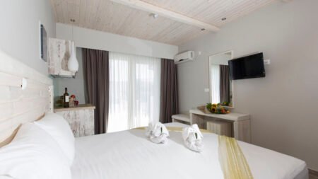 Waarom een Fly & Go vakantie? * Gemak voorop: pakketreis met vlucht + deze accommodatie + huurauto * De verzekering voor je auto is geregeld * Vrijheid en avontuur: ontdek in je eigen tempo je vakantiebestemming Alvast sfeer proeven? Lees snel onze insidertips (https://www.corendon.nl/inspiratie/geo/samos/) Het kleinschalige Anthemis Hotel, gelegen nabij het prachtige Samos-Stad, is een waar juweeltje dat zijn gasten een onvergetelijk verblijf biedt. Dit charmante hotel weet perfect de Griekse gastvrijheid en de serene schoonheid van het eiland Samos te combineren, waardoor het een ideale bestemming is voor reizigers die op zoek zijn naar rust en ontspanning. Op een paar minuten loopafstand vind je het strand en het centrum van Samos-Stad. Het Anthemis Hotel onderscheidt zich door zijn intieme sfeer en persoonlijke service. De kamers in het Anthemis Hotel zijn stijlvol ingericht en bieden een prachtig uitzicht op de omgeving. Het buitenzwembad is de ideale plek om een verkoelende duik te nemen en te ontspannen op een ligbedje met een goed boek. Bij de poolbar kun je een verfrissend drankje of een snack bestellen. Kortom, Anthemis Hotel biedt een idyllisch toevluchtsoord voor reizigers die op zoek zijn naar een ontspannen en authentieke Griekse ervaring. Met zijn vriendelijke sfeer, prachtige omgeving en persoonlijke service, zul je je hier meteen thuis voelen en genieten van een onvergetelijk verblijf.