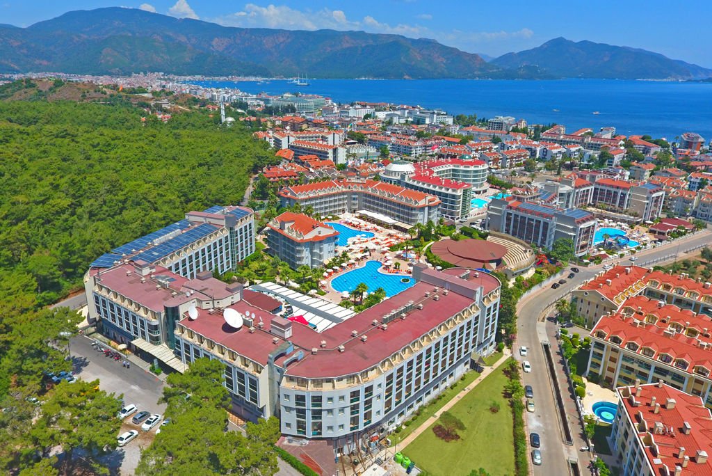 Gelegen aan de rand van Marmaris in een weelderig dennenbos, biedt het gerenommeerde Green Nature Resort & Spa alles wat nodig is voor een buitengewone gezinsvakantie. Dit gezellige hotel is niet voor niets al jarenlang favoriet bij veel Nederlandse vakantiegangers! De zwembaden in lagunestijl en de fantastische waterglijbanen zorgen voor úrenlange waterpret bij de kids, terwijl jij ondertussen op je gemak een heerlijk boek leest onder de Turkse zon. Vanuit het hotel wandel je binnen korte tijd naar het strand, maar je kunt ook met de gratis shuttle service mee, wat een gemak is dat! Met zijn goede faciliteiten is dit hotel populair bij gezinnen en stellen die op zoek zijn naar een vriendelijk accommodatie voor veel vakantieplezier.
