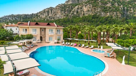Het gezellige Keskin hotel is al jarenlang geliefd bij veel Nederlanders en dat is niet voor niets! Met op de achtergrond de indrukwekkende bergen en een zwembad omringd door tropische palmbomen, overgoten met Turkse zonneschijn heb je hier het perfecte decor om heerlijk bij weg te dromen. De 3 zwembaden in de prachtige tuin geven je altijd ruimte om heerlijk af te koelen, lekker te luieren in de schaduw of aan je kleurtje te werken in de zon. Het ruim opgezette complex met ontspannen sfeer, nette kamers, vriendelijk personeel en een uitgebreid ontbijt bezorgen je een heerlijke relaxte vakantie. Verken ook de omgeving van Dalyan met veel natuurrijke pareltjes, culturele hoogtepunten en Turkse gastvrijheid. Hier ervaar je al snel waarom veel mensen jaarlijks terug keren. Wandel langs de groene rivier naar het gemoedelijke centrum van Dalyan voor een heerlijke maaltijd en geniet onderweg van de rust en de prachtige natuur. Maak ook zeker eens een boottocht door de rietvelden, langs de oude koningsgraven, breng een bezoek aan het modderbad en vergeet vooral het Iztuzu strand niet, wie weet spot je nog een Caretta Caretta schildpad! Wanneer zien we jou terug bij Keskin hotel in Dalyan?