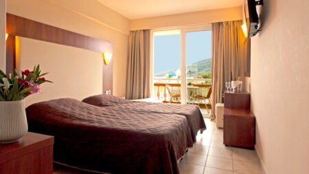 Direct naar: * Ligging () * Faciliteiten () * Restaurants & Bars () * Hotelkamers () * Sport & Ontspanning () * Kinderfaciliteiten () * Zwembaden & Strand () * Verzorging () Ligging: Messonghi Beach * Direct aan het strand * Op ca. 700 meter van het centrum van Messonghi * Bushalte op ca. 250 meter * Corfu-Stad op ca. 22 kilometer * Winkels, restaurants en bars op ca. 350 meter * Let op: Dit hotel is niet rolstoelvriendelijk Faciliteiten * Meerdere gebouwen met maximaal 5 verdiepingen * Niet in elk gebouw is een lift aanwezig * 968 kamers * 24-uursreceptie * Lobby * Tuin * Wifi * Kapsalon* * Winkels en minimarkt* * Wasservice* * Doktersservice* * Privé parkeerterrein *Tegen betaling Restaurants & bars * 2 buffetrestaurants * 1 snackrestaurant (geopend van halverwege mei t/m halverwege september) * 3 bars * Disco bar Hotelkamers * Superiorkamer (1-3 personen) * Ca. 19 m² * Gerenoveerd * Telefoon* * Airconditioning * Televisie * Koelkastje * Koffie- en theezetfaciliteiten * Kluisje * Wifi * Douche * Toilet * Föhn * Balkon of terras met zitje * Tuinzicht * Indien je met 3 personen op de kamer verblijft, wordt er een bijzetbed in de kamer geplaatst * Tegen een meerprijs te boeken met zeezicht *Tegen betaling * Superior Bungalow tuinzicht (1-3 personen, vanaf zomer 2024) * Ca. 19 m² * Dezelfde faciliteiten als de superiorkamer * Indien je met 3 personen op de kamer verblijft, wordt er een bijzetbed in de kamer geplaatst * Superiorkamer plus tuinzicht (1-2 personen) * Ca. 19 m² * Dezelfde faciliteiten als de superiorkamer * Tegen een meerprijs te boeken met zeezicht * Superior quadkamer Tuinzicht (min. 2 pers. en max. 2 volw. + 2 kind.) * Ca. 27,5 m² * Bestaat uit 1 ruimte met een stapelbed voor de kinderen * Dezelfde faciliteiten als de superiorkamer Sport & Ontspanning * Fitness * Aerobics * Yoga * Basketbal * Beachvolleybal * Boccia * Darts * Tennis (materiaal tegen betaling) * Voetbal * Tafeltennis * Biljart* * Gameroom* * Duikcenter* * Watersporten aan het strand* * Turks bad* * Bubbelbad* * Massages en schoonheidsbehandelingen* * In het hoogseizoen dagelijks entertainment, daarbuiten beperkt entertainment *Tegen betaling Kinderfaciliteiten * 2 kinderzwembaden * Mini aquapark met glijbanen (op vaste tijden geopend) voor kinderen tot 12 jaar * Kinderen en volwassenen kunnen tegen betaling gebruikmaken van de grote glijbanen (ca. € 6, – per persoon per verblijf, vanaf 2024 gratis) * Miniclub 6 dagen per week (4-12 jaar) * Minidisco 6 dagen per week * Speeltuintje Zwembaden & Strand * 2 buitenzwembaden * Kinderen en volwassenen kunnen tegen betaling gebruikmaken van de grote glijbanen (ca. € 6, – per persoon per verblijf, vanaf 2024 gratis) * Zonneterras met gratis ligbedden en parasols * Ligbedden op het strand tegen betaling * Badhanddoekenservice tegen betaling en borg, te verkrijgen in de Spa Verzorging Zomer: Messonghi Beach * Verblijf o.b.v. All Inclusive: * Ontbijt in buffetvorm (07.00-10.00 uur) * Laat ontbijt in buffetvorm (10.30-12.00 uur) * Lunch in buffetvorm (12.30-14.30 uur) * Diner in buffetvorm (19.00-21.30 uur) * Snacks (16.00-18.00 uur) * Koffie/thee en koekjes (10.30-12.00 en 16.00-18.00 uur) * IJs (10.00-23.00 uur) * Geselecteerde lokale alcoholische en alcoholvrije drankjes van 10.00 tot 23.00 uur * Tegen betaling: drankjes in de disco en alle consumpties na 23.00 uur Extra informatie: Bij deze pakketreis is een huurauto inbegrepen, daarom vervalt de transfer van de luchthaven naar de accommodatie en vice versa. Bij aankomst op je bestemming staat de auto voor je klaar op de luchthaven. Op de dag van vertrek lever je de auto hier ook weer in. De reisleiding, aanwezig op de luchthaven, verwijst je naar het autoverhuurbedrijf en geeft je een welkomstenvelop. Is je reisgezelschap te groot voor één auto? Boek dan een tweede auto bij. Voor prijzen en beschikbaarheid kun je contact opnemen met ons Contact Center. Informatie & Voorwaarden Huurauto ()