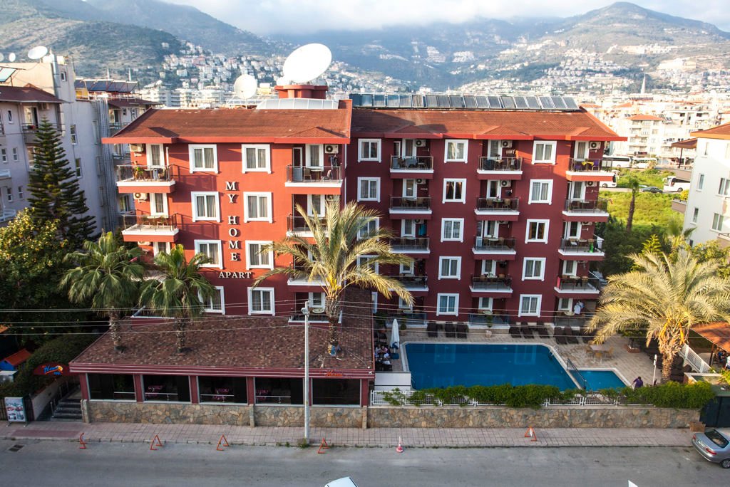 Direct naar: * Ligging () * Faciliteiten () * Restaurants & Bars () * Hotelkamers () * Sport & Ontspanning () * Zwembaden & Strand () * Verzorging () * Ligging: My Home Appartementen * Gelegen in het centrum van Alanya * Ca. 250 meter van het Kleopatra strand * Bushalte op ca. 50 meter * Winkels, restaurants en bars op ca. 50 meter * Aquapark op ca. 200 meter * Diverse bezienswaardigheden binnen 1 kilometer afstand Faciliteiten * 1 gebouw met 4 verdiepingen * 1 lift * 46 appartementen * Lobby * Wifi in een aantal openbare ruimtes * Minimarkt* * Wasservice* * Doktersservice* *Tegen betaling Restaurants & bars * 1 restaurant * 1 bar Hotelkamers * 2-kamerappartement (1-4 personen) * Ca. 46 m² * Bestaat uit een woon-/slaapkamer met slaapbank en een aparte slaapkamer * Telefoon* * Airconditioning* * Televisie * Kluisje* * Wifi * Kitchenette * Koelkast * Koffiezetapparaat* * 2-pits kookplaat * Magnetron * Douche * Toilet * Föhn * Balkon of terras met zitje *Tegen betaling Sport & Ontspanning * Tafeltennis* * Fitnessruimte * Turks bad* * Sauna* * Massages* *Tegen betaling Zwembaden & Strand * 1 buitenzwembad * 1 kinderbad * Zonneterras met gratis ligbedden en parasols (zwembad) * Ligbedden, matrasjes en parasols tegen betaling (strand) Verzorging Zomer & Winter: My Home Appartementen * Verblijf o.b.v. Logies * Tegen een meerprijs verblijf je o.b.v. Logies & Ontbijt: * In de zomerperiode een ontbijtbuffet en in de winterperiode à la carte service Extra informatie: Bij deze pakketreis is een huurauto inbegrepen, daarom vervalt de transfer van de luchthaven naar de accommodatie en vice versa. Bij aankomst op je bestemming staat de auto voor je klaar op de luchthaven. Op de dag van vertrek lever je de auto hier ook weer in. De reisleiding, aanwezig op de luchthaven, verwijst je naar het autoverhuurbedrijf en geeft je een welkomstenvelop. Is je reisgezelschap te groot voor één auto? Boek dan een tweede auto bij. Voor prijzen en beschikbaarheid kun je contact opnemen met ons Contact Center. De meeste hotels beschikken over een eigen parkeerterrein (met een beperkt aantal plaatsen). Reserveren voor een parkeerplek op het terrein is helaas niet mogelijk. In de directe omgeving van het hotel zijn er openbare parkeerplaatsen beschikbaar tegen betaling, waarbij tarieven gelden op basis van dag- of uurtarieven. Voorwaarden & informatie huurauto ()