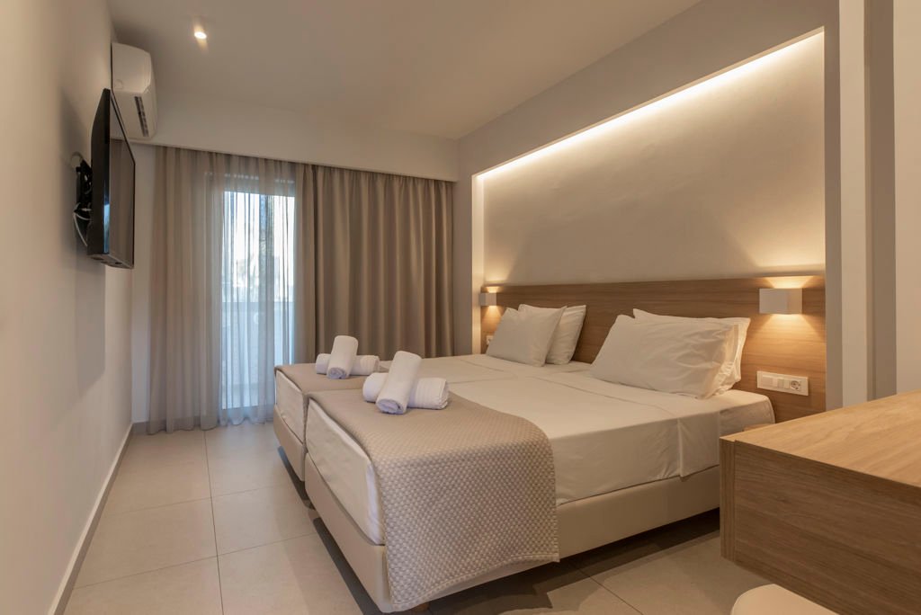 Direct naar: * Ligging () * Faciliteiten () * Restaurants & Bars () * Hotelkamers () * Kinderfaciliteiten () * Zwembaden & strand () * Verzorging () * Ligging: Mythos Suite Hotel * Openbaar zandstrand Tigaki Beach op circa 100 meter * Centrum van Kos-stad op circa 10 kilometer * Dichtstbijzijnde winkel en bar op circa 10 meter * Tigaki op circa 100 meter * Salt Lake op circa 500 meter Faciliteiten * 4 gebouwen met 3 verdiepingen * Er zijn geen liften aanwezig * 39 kamers * 24-uursreceptie * Bagageruimte * Lobby * Tuin * Wifi * Minimarkt* * Privé parkeerterrein *Tegen betaling Restaurants & bars * 1 à-la-carterestaurant * 1 bar Hotelkamers * Juniorsuite (2-3 personen) * Ca. 30 m² * Telefoon* * Airconditioning * Televisie * Koelkastje * Kluisje * Waterkoker * Magnetron * Wifi * Douche * Toilet * Föhn * Balkon of terras met zitje *Tegen betaling * Familiekamer (2-4 personen) * Ca. 40 m² * Bestaat uit een woonkamer en 2 slaapkamers * Dezelfde faciliteiten als de Juniorsuite Kinderfaciliteiten * 1 kinderzwembad * Speeltuintje * Babybedjes (op aanvraag en op basis van beschikbaarheid) Zwembaden & strand * 1 buitenzwembad * Zonneterras met gratis ligbedden en parasols Verzorging Zomer: Mythos Suite Hotel * Verblijf o.b.v. Logies & Ontbijt: ontbijt in buffetvorm Extra informatie: Bij deze pakketreis is een huurauto inbegrepen, daarom vervalt de transfer van de luchthaven naar de accommodatie en vice versa. De reisleiding, aanwezig op de luchthaven, verwijst je naar het autoverhuurbedrijf en geeft je een welkomstenvelop. Is je reisgezelschap te groot voor één auto? Boek dan een tweede auto bij. Voor prijzen en beschikbaarheid kun je contact opnemen met ons Contact Center. Informatie & Voorwaarden Huurauto ()