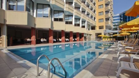 Palm hotel ligt net naast de haven van Kusadasi en op ca. 2 minuten lopen van het strand. Het is de ideale overnachtingsplek voor als je dicht bij het strand en vlak bij het centrum van Kusadasi wilt verblijven.