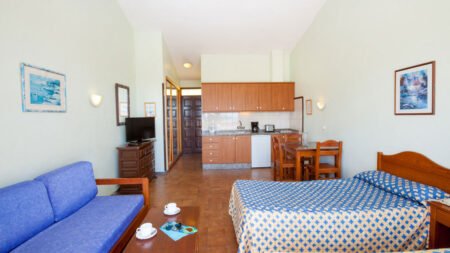 Direct naar: * Ligging () * Faciliteiten () * Restaurants & Bars () * Hotelkamers () * Sport & Ontspanning () * Kinderfaciliteiten () * Zwembaden () * Verzorging () Ligging: Paraiso Del Sol * In het centrum van Playa de las Americas * Openbaar zandstrand Playa de Troya op circa 300 meter * Dichtstbijzijnde winkel op circa 200 meter * Supermarkt op circa 50 meter * Dichtstbijzijnde restaurant en bar op circa 100 meter * Siam Park op circa 300 meter * Los Cristianos op circa 3 kilometer * Bushalte op circa 250 meter Faciliteiten * 13 gebouwen met maximaal 2 verdiepingen * Er zijn geen liften aanwezig * 96 kamers * 24-uursreceptie * Lobby * Tuin * Wifi * Wasservice* * Let op: dit hotel is niet rolstoelvriendelijk en niet toegankelijk voor gasten die slecht ter been zijn * Paradero I en II (delen van Paraiso del Sol) liggen wat verder van elkaar vandaan en zijn niet direct met elkaar verbonden *Tegen betaling Restaurants & bars * 1 buffetrestaurant * 1 poolbar Hotelkamers * Studio (1-3 pers.) * Ca. 27 m² * Gelegen in Paradero II * Telefoon* * Televisie * Kluisje* * Wifi * Kitchenette * Koelkastje * 2 kookplaten * Broodrooster * Koffie-/theezetfaciliteiten * Douche in bad * Toilet * Föhn * Balkon of terras met zitje *Tegen betaling * Studio superior (1-3 pers.) * Ca. 28 m² * Gelegen in Paradero I * De superior studio's bevinden zich dichter bij de verschillende faciliteiten, zoals het zwembad of de receptie * Dezelfde faciliteiten als de studio Sport & Ontspanning * Biljart* * Tafeltennis* * Watersporten aan het strand* * Golfbaan op ca. 1 kilometer* *Tegen betaling Kinderfaciliteiten * 1 kinderzwembad Zwembaden & Strand * 1 buitenzwembad (verwarmd in de winterperiode) * Zonneterras met gratis ligbedden en parasols * Badhanddoekenservice met borg * Ligbedden en parasols op het strand zijn tegen betaling Verzorging Zomer & Winter: Paraiso Del Sol * Verblijf o.b.v. Logies * Tegen een meerprijs verblijf je o.b.v. Logies & Ontbijt: Ontbijt in buffetvorm * Tegen een meerprijs verblijf je o.b.v. Halfpension: Ontbijt en diner in buffetvorm Extra informatie Bij deze pakketreis is een huurauto inbegrepen, daarom vervalt de transfer van de luchthaven naar de accommodatie en vice versa. De reisleiding, aanwezig op de luchthaven, verwijst je naar het autoverhuurbedrijf en geeft je een welkomstenvelop. Is je reisgezelschap te groot voor één auto? Boek dan een tweede auto bij. Voor prijzen en beschikbaarheid kun je contact opnemen met ons Contact Center. Informatie & Voorwaarden Huurauto ()