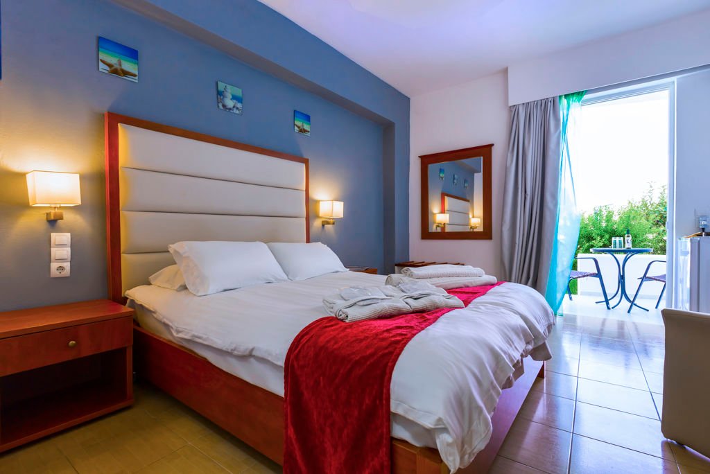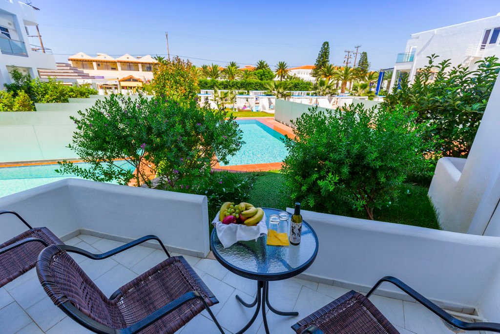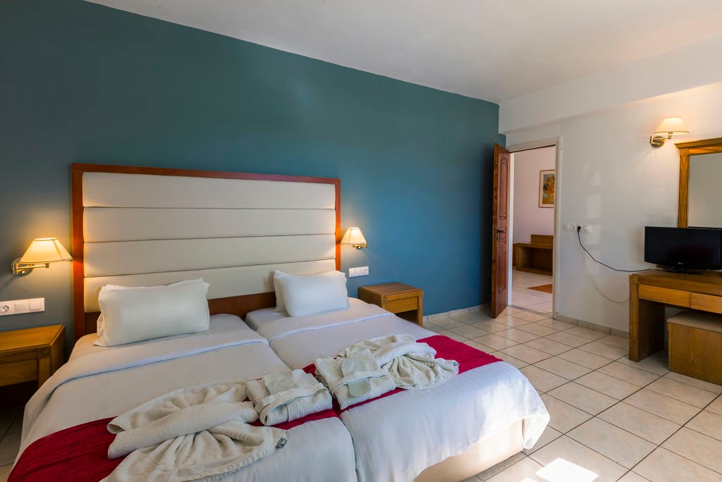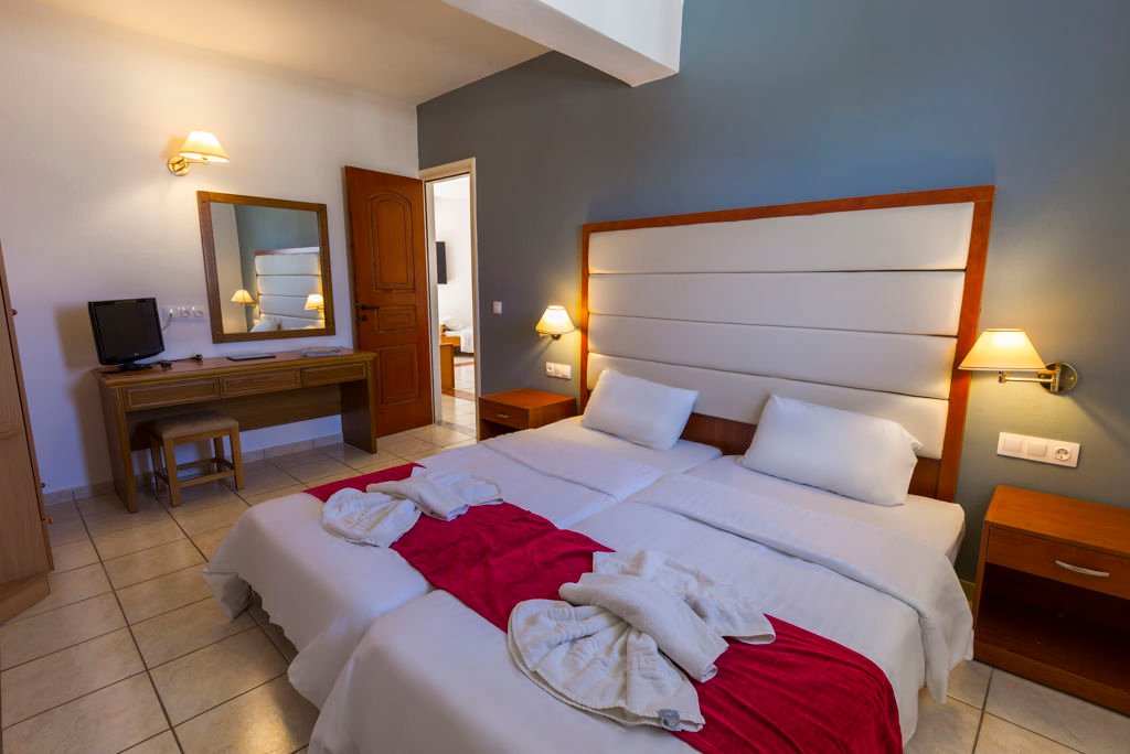 Direct naar: * Ligging () * Faciliteiten () * Restaurants & bars () * Zwembaden () * Hotelkamers () * Activiteiten & ontspanning () * Kinderfaciliteiten () * Verzorging () Ligging Rethymno Residence * Op loopafstand van het openbare zandstrand * Ca. 6 kilometer van het centrum van Rethymno * Bushalte op ca. 100 m * Taxi op ca. 100 m * Winkels, restaurants en bars op ca. 100 m Faciliteiten * 6 gebouwen met 2 verdiepingen * 153 kamers * 2 liften * 24-uursreceptie * Lobby * Tuin * Roomservice* * Wifi * Wasservice* * Doktersservice* *Tegen betaling Restaurants & bars * 1 buffetrestaurant * 3 bars Zwembaden * 3 buitenzwembaden * 1 buitenzwembad met 5 glijbanen * 1 binnenzwembad * Ligbedden en parasols gratis (zwembad) * Badhanddoekenservice* *Tegen betaling Hotelkamers * Standaard kamer (1-2 personen) * Ca. 17-20 m² * Telefoon* * Airconditioning * Televisie * Minibar * Kluisje* * Wifi * Douche * Toilet * Föhn * Balkon of terras met zitje * Tegen een meerprijs boekbaar met privézwembad *Tegen betaling * Standaard familiekamer (2-3 personen) * Ca. 22-27 m² * Dezelfde faciliteiten als de Standaard kamer * Tegen een meerprijs boekbaar met privézwembad * Standaard familiekamer met één slaapkamer (2-4 personen) * Ca. 45 m² * Aparte woonkamer en aparte slaapkamer * Bad en inloopdouche * Dezelfde faciliteiten als de Standaard kamer * Tegen een meerprijs boekbaar met privézwembad * Standaard familiekamer met twee slaapkamers (2-6 personen) * Ca. 55 m² * Aparte woonkamer en aparte slaapkamers * Koffie-/theezetfaciliteiten (op aanvraag) * Inloopdouche * Dezelfde faciliteiten als de Standaard kamer * Tegen een meerprijs boekbaar met privézwembad Activiteiten & ontspanning * Aerobics * Yoga * Tafeltennis * Duikcenter* * Watersporten aan het strand* * Fitness/gym * Spacenter: * Hamam * Binnenzwembad * Bubbelbad * Massages* * 6x per week entertainment * Dagelijks shows * Livemuziek 4x per week, weersafhankelijk *Tegen betaling Kinderfaciliteiten * 2 kinderzwembaden waarvan 1 met glijbanen * Miniclub (4-12 jaar) * Kinderentertainment * Kinderanimatie * Minidisco * Speeltuin * Babybedjes (op aanvraag en op basis van beschikbaarheid) * Babysitservice op aanvraag* en tegen betaling *Tegen betaling Verzorging Zomer: Rethymno Residence * Verblijf o.b.v. All Inclusive: * Ontbijt in buffetvorm (07.30-10.00 uur) * Laat ontbijt in buffetvorm (10.30-12.00 uur) * Lunch in buffetvorm (12.30-14.00 uur) * Diner in buffetvorm (18.30-21.30 uur) * Geselecteerde lokale (non-)alcoholische dranken Extra informatie: Bij deze pakketreis is een huurauto inbegrepen, daarom vervalt de transfer van de luchthaven naar de accommodatie en vice versa. Bij aankomst op je bestemming staat de auto voor je klaar op de luchthaven. Op de dag van vertrek lever je de auto hier ook weer in. De reisleiding, aanwezig op de luchthaven, verwijst je naar het autoverhuurbedrijf en geeft je een welkomstenvelop. Informatie & Voorwaarden Huurauto ()