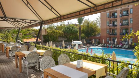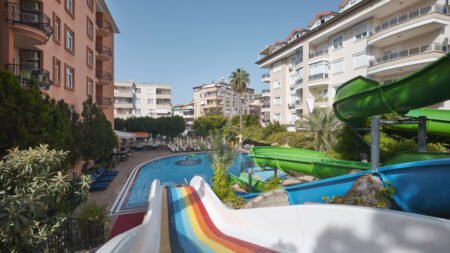 Direct naar: * Ligging () * Faciliteiten () * Restaurants & bars () * Zwembaden () * Hotelkamers () * Kinderfaciliteiten () * Verzorging () * Ligging Sunpark Garden * Ca. 750 meter van het centrum van Alanya * Winkels en restaurants op loopafstand * Ca. 1,5 kilometer van het Kleopatra strand * Bushalte op ca. 200 meter * Taxistandplaats tegenover het hotel Faciliteiten * 2 gebouwen met maximaal 6 verdiepingen * 3 liften * 100 kamers * Receptie * Bagageruimte * Lobby * Tuin * Wifi * Roomservice* * Minimarkt* * Wasservice* * Doktersservice* * Openbare parkeerplaatsen *Tegen betaling Restaurants & bars * 1 buffetrestaurant * 1 à-la-carterestaurant (vooraf reserveren en tegen betaling) * 2 bars Zwembaden en strand * 1 buitenzwembad * 1 buitenzwembad met 3 glijbanen (op vaste tijden geopend) * Zonneterras * Ligbedden en parasols gratis (zwembad) * Ligbedden en parasols tegen betaling (strand, gratis bij verblijf o.b.v. All Inclusive) Hotelkamers * Standaardkamer (2 personen) * Ca. 25-28 m² * Telefoon* * Airconditioning * Televisie * Minibar* * Kluisje* * Waterkoker * Wifi * Douche * Toilet * Föhn * Balkon of terras met zitje *Tegen betaling * Familiekamer (1-4 personen) * Ca. 30-32 m² * Bestaat uit een woon-/slaapkamer met slaapbank en aparte slaapkamer * Kitchenette * Dezelfde faciliteiten als de Standaardkamer * Tegen een meerprijs boekbaar als Kindvriendelijke kamer (4 personen) * Tegen een meerprijs boekbaar met zwembadzicht (2-4 personen) * Familiekamer met 2 slaapkamers appartement (2-6 personen) * Ca. 55-65 m² * Bestaat uit een woon-/slaapkamer met slaapbank en 2 aparte slaapkamers * Dezelfde faciliteiten als de Familiekamer * Tegen een meerprijs boekbaar met zwembadzicht Kinderfaciliteiten * 1 kinderzwembad * Miniclub (4-12 jaar) 6 dagen per week * Minidisco 6 dagen per week * Babybedjes op aanvraag Verzorging Zomer: Sunpark Garden * Verblijf o.b.v. Logies & Ontbijt: ontbijt in buffetvorm * Tegen een meerprijs verblijf je o.b.v. Halfpension: Ontbijt in buffetvorm en diner in buffetvorm * Tegen een meerprijs verblijf je o.b.v. All Inclusive: * Ontbijt in buffetvorm (08.00-10.00 uur) * Laat ontbijt (10.00-11.00 uur) * Lunch in buffetvorm (12.30-14.30 uur) * Diner in buffetvorm (19.00-21.00 uur) * Koekjes en fruit (16.00-17.00 uur) * Koffie/thee en koekjes (16.00-17.00 uur) * IJs (10.00-12.00 uur, 14.00-15.00 uur en 19.00-21.00 uur) * Geselecteerde lokale (non-)alcoholische dranken (10.00-23.00 uur) * Tegen betaling: import dranken, roomservice en het à-la-carterestaurant (vooraf reserveren) Extra informatie: Bij deze pakketreis is een huurauto inbegrepen, daarom vervalt de transfer van de luchthaven naar de accommodatie en vice versa. De reisleiding, aanwezig op de luchthaven, verwijst je naar het autoverhuurbedrijf en geeft je een welkomstenvelop. Is je reisgezelschap te groot voor één auto? Boek dan een tweede auto bij. Voor prijzen en beschikbaarheid kun je contact opnemen met ons Contact Center. De meeste hotels beschikken over een eigen parkeerterrein (met een beperkt aantal plaatsen). Reserveren voor een parkeerplek op het terrein is helaas niet mogelijk. In de directe omgeving van het hotel zijn er openbare parkeerplaatsen beschikbaar tegen betaling, waarbij tarieven gelden op basis van dag- of uurtarieven. Voorwaarden & informatie huurauto ()