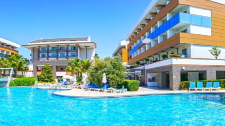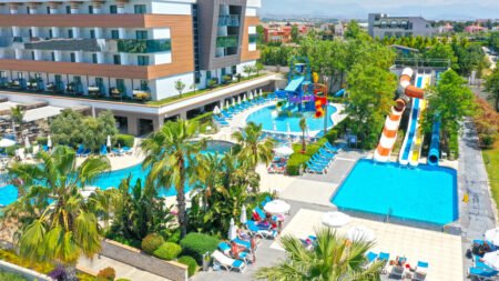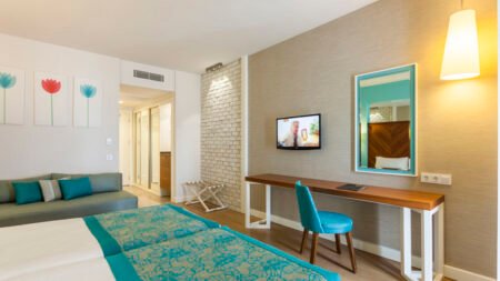Terrace Elite Resort is een heerlijk familiehotel aan de zonnige zuidkust van Turkije. Het hart van het hotel is het grote, mooie zwembadgedeelte, waar je op één van de comfortabele ligbedden van de dag kunt genieten. Voor de jongste leden van het gezin zijn er waterglijbanen en een kinderbad. In het Spa & Wellness center van het hotel kun je genieten van een massage (tegen betaling) of de Turkse baden uitproberen. Zin om actief bezig te zijn? Het hotel heeft een fitnessruimte en biedt voldoende sportactiviteiten. Als je een dagje aan het strand wilt doorbrengen, kun je eenvoudig de shuttlebus van het hotel nemen, die je rechtstreeks naar het privéstrand brengt. Tijdens je vakantie bij Terrace Elite Resort kun je met het hele gezin genieten in het buffetrestaurant en de snackbars van het hotel. De vele faciliteiten maken dit een ideaal hotel voor een onbezorgde familievakantie!