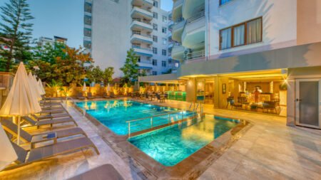 Direct naar: * Ligging () * Faciliteiten () * Restaurants & bars () * Zwembaden () * Hotelkamers () * Activiteiten & ontspanning () * Kinderfaciliteiten () * Verzorging () Ligging Yeniacun * Op ca. 100 meter van het Kleopatra strand * Op ca. 1,5 kilometer van het centrum van Alanya * Restaurants en bars op ca. 50 meter * Winkels op ca. 150 meter * Bushalte op ca. 50 meter * Damlatas grotten op ca. 1 kilometer * Het kasteel van Alanya op ca. 2,5 kilometer Faciliteiten * 1 gebouw met maximaal 7 verdiepingen * 1 lift * In 2023 volledig gerenoveerd * 35 appartementen * 24-uursreceptie * Kluisverhuur* bij de receptie * Lobby * Bagageruimte * Wifi *Tegen betaling Restaurants & bars * 1 à-la-carterestaurant * 1 bar Zwembaden * 1 buitenzwembad * Zonneterras * Gratis ligbedden (zwembad) * Ligbedden en parasols tegen betaling (strand) Hotelkamers * 2-kamerappartement (1-4 personen) * Ca. 60 m² * Bestaat uit een woon-/slaapkamer met slaapbank en aparte slaapkamer * Telefoon* * Airconditioning* * Satelliettelevisie * Kitchenette * Kookplaat * Koelkast * Wifi * Bad/douche * Toilet * Föhn * Balkon of terras met zitje *Tegen betaling * 3-kamerappartement (2-6 personen) * Ca. 70 m² * Bestaat uit een woon-/slaapkamer met slaapbank en 2 aparte slaapkamers * Dezelfde faciliteiten als het 2-kamerappartement Kinderfaciliteiten * 1 klein kinderzwembad * Kinderbedjes op aanvraag en op basis van beschikbaarheid Verzorging Zomer: Yeniacun * Verblijf o.b.v. Logies * Tegen een meerprijs verblijf je o.b.v. Logies & Ontbijt Extra informatie: Bij deze pakketreis is een huurauto inbegrepen, daarom vervalt de transfer van de luchthaven naar de accommodatie en vice versa. De reisleiding, aanwezig op de luchthaven, verwijst je naar het autoverhuurbedrijf en geeft je een welkomstenvelop. Is je reisgezelschap te groot voor één auto? Boek dan een tweede auto bij. Voor prijzen en beschikbaarheid kun je contact opnemen met ons Contact Center. De meeste hotels beschikken over een eigen parkeerterrein (met een beperkt aantal plaatsen). Reserveren voor een parkeerplek op het terrein is helaas niet mogelijk. In de directe omgeving van het hotel zijn er openbare parkeerplaatsen beschikbaar tegen betaling, waarbij tarieven gelden op basis van dag- of uurtarieven. Voorwaarden & informatie huurauto ()