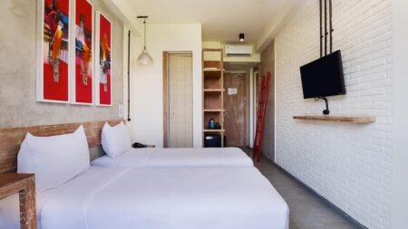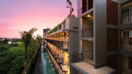 Dit resort ligt midden in het bruisende Canggu, op slechts vijf minuten lopen van de populaire surfspots Echo Beach en Batu Bolong. Of je nu komt voor de golven, de zonsondergang of gewoon wilt ontspannen, hier voel je je meteen thuis. Met hippe hotspots zoals La Brisa en bezienswaardigheden als Tanah Lot en Atlas Beach Club vlakbij, is er altijd iets te doen. Ontspan aan de rooftopbar met uitzicht op de Indische Oceaan of geniet van het zwembad met een koel drankje. Kortom, een relaxte basis voor een stijlvolle vakantie onder de Balinese zon.