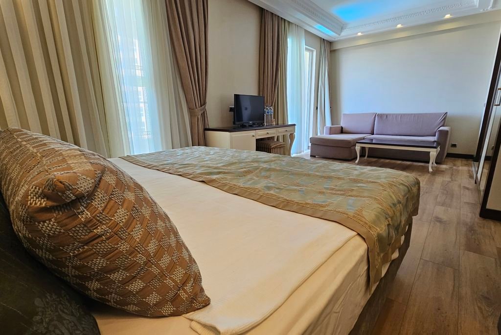 Zomer Wanneer je tussen 14-04-2025 en 31-10-2025 in deze accommodatie verblijft, is onderstaande informatie van toepassing. * Ligging * Gelegen op een heuvel * Privéstrand op circa 4 kilometer * Ligbedden * Parasol * Mahmutlar op circa 5 kilometer * Alanya op circa 15 kilometer * Shuttleservice naar het strand * Shuttleservice naar het centrum (Alanya) tegen betaling * Algemeen & faciliteiten * 2 gebouwen * Maximaal 16 verdiepingen * 120 kamers * Receptie * 24 uur per dag * Lobby * 6 liften * Bagageruimte * Wifi in alle openbare ruimtes * Meerdere winkels * Minimarkt * Wasservice tegen betaling * Doktersservice tegen betaling * Tuin * Openbare parkeergelegenheid * Privé parkeergelegenheid * Restaurants & bars * Buffetrestaurant * 3 à-la-carterestaurants * Snackbar * Roomservice tegen betaling * 4 drinkgelegenheden * 4 bars * Activiteiten & ontspanning * Basketbal tegen betaling * Beschikbaar bij een nabijgelegen accommodatie * Beachvolleybal * Biljart tegen betaling * Bowling tegen betaling * Darts * Fitness * Tafeltennis * Tafelvoetbal tegen betaling * Tennis tegen betaling * Beschikbaar bij een nabijgelegen accommodatie * Voetbal tegen betaling * Watersporten tegen betaling * Spa Center * Binnenzwembad * Sauna * Hamam * Bubbelbad binnen * Massages tegen betaling * Schoonheidsbehandelingen tegen betaling * Gameroom * Animatie * Shows * Livemuziek * Zwembaden * 2 buitenzwembaden * Olympisch zwembad * Relaxbad * Apart kindergedeelte in 2 buitenzwembaden * Aquapark * Binnenzwembad * Verwarmd * Apart kindergedeelte in het binnenzwembad * Zonneterras * Ligbedden * Parasol * Badhanddoekenservice * Kinderfaciliteiten * Mini club (4-12 jaar) * Minidisco * Buitenspeeltuin * Babybedje * Verzorging * All Inclusive * Ontbijt in buffetvorm (07.00-10.00 uur) * Laat ontbijt in buffetvorm (10.00-11.00 uur) * Lunch in buffetvorm (12.30-14.30 uur) * Diner in buffetvorm (18.30-21.00 uur) * Dineren in één van de geselecteerde à-la-carterestaurants 1 keer per verblijf bij een verblijf van minimaal 5 dagen * Snacks (12.30-16.30 uur) * Koffie, thee & koekjes (15.30-17.30 uur) * IJs (15.00-16.00 uur) * Middernachtsnack (00.00-01.00 uur) * Selectie lokale (non-)alcoholische drankjes (10.00-00.00 uur) * Tegen betaling: dineren in enkele à-la-carterestaurants, drankjes na 00.00 uur, import drankjes en roomserviceHotelkamers * 2-persoonskamer Standaard Deluxe DZD * Oppervlakte circa 24 m² * Airconditioning * Kluisje * Satelliettelevisie * Telefoon * Eet- en drinkfaciliteiten * Minibar * Gevuld met water * Badkamer met douche, toilet, föhn en badslippers * Wifi * Balkon of terras (zitje) * 2-persoonskamer Premium De premiumkamers liggen in de bijgebouwen op het hotelterrein, op enige afstand van het hoofdgebouw en de faciliteiten. Minder geschikt voor gasten met beperkte mobiliteit. Er rijdt beperkt een pendelbus met zitplaatsen tussen de gebouwen. DR * In een bijgebouw * Airconditioning * Kluisje * Televisie * Telefoon tegen betaling * Eet- en drinkfaciliteiten * Minibar * Gevuld met water * Badkamer met bad of douche, toilet, föhn en badslippers * Wifi * Familiekamer Suite FU1 * Oppervlakte circa 101 m² * Woon-/slaapkamer met meerdere slaapplaatsen: slaapbank voor twee personen * 2 slaapkamers * Airconditioning * Kluisje * Satelliettelevisie * Telefoon * Kitchenette * Meerdere-pits kooktoestel * Oven * Koelkast * Vaatwasmachine * Badkamer met bad of douche, toilet, föhn, badjassen en badslippers * Wifi * Balkon of terras (zitje) * Familiekamer Suite FU2 * Oppervlakte circa 101 m² * Woon-/slaapkamer met meerdere slaapplaatsen: slaapbank voor twee personen * 2 slaapkamers * Airconditioning * Kluisje * Satelliettelevisie * Telefoon tegen betaling * Kitchenette * Meerdere-pits kooktoestel * Oven * Koelkast * Vaatwasmachine * Badkamer met bad of douche, toilet, föhn, badjassen en badslippers * Wifi * Balkon of terras (zitje) * Familiekamer Suite FU3 * Oppervlakte circa 101 m² * Woon-/slaapkamer met meerdere slaapplaatsen: slaapbank voor twee personen * 2 slaapkamers * Airconditioning * Kluisje * Satelliettelevisie * Telefoon tegen betaling * Kitchenette * Meerdere-pits kooktoestel * Oven * Koelkast * Vaatwasmachine * Badkamer met bad of douche, toilet, föhn, badjassen en badslippers * Wifi * Balkon of terras (zitje) * Familiekamer Suite FU4 * Oppervlakte circa 101 m² * Woon-/slaapkamer met meerdere slaapplaatsen: slaapbank voor twee personen * 2 slaapkamers * Airconditioning * Kluisje * Satelliettelevisie * Telefoon * Kitchenette * Meerdere-pits kooktoestel * Oven * Koelkast * Vaatwasmachine * Badkamer met bad of douche, toilet, föhn, badjassen en badslippers * Wifi * Balkon of terras (zitje) * Suite Deluxe UD * Oppervlakte circa 51 m² * Airconditioning * Kluisje * Satelliettelevisie * Telefoon * Eet- en drinkfaciliteiten * Minibar * Gevuld met water * Badkamer met bad of douche, toilet, föhn en badslippers * Wifi * Balkon of terras (zitje)