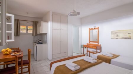 Zomer Wanneer je tussen 01-05-2025 en 31-10-2025 in deze accommodatie verblijft, is onderstaande informatie van toepassing. * Ligging * Gelegen op een heuvel * Openbaar strand op circa 600 meter * Centrum van Chersonissos op circa 400 meter * Dichtstbijzijnde winkel op circa 450 meter * Dichtstbijzijnde restaurant op circa 450 meter * Dichtstbijzijnde bar op circa 650 meter * Water Park op circa 2,5 kilometer * Bushalte op circa 450 meter * Algemeen & faciliteiten * 4 gebouwen * Maximaal 2 verdiepingen * 28 kamers * Receptie * 24 uur per dag * Bagageruimte * Wifi in één van de openbare ruimtes * Doktersservice tegen betaling * Privé parkeergelegenheid * Openbare parkeergelegenheid * Restaurants & bars * Drinkgelegenheid * Poolbar * Zwembaden * Buitenzwembad * Zoetwater * Zonneterras * Ligbedden * Parasol * Kinderfaciliteiten * Babybedje op aanvraag via ons contact center * Verzorging * Logies * Logies & Ontbijt * Goed om te weten * Deze accommodatie is niet geschikt voor mensen die slecht ter been zijnHotelkamers * Studio Standaard SZ * Oppervlakte van circa 22 m² * Tuinzicht * Airconditioning * Kluisje gratis * Kitchenette * Kookstel met 2 kookplaten * Koffie- en theefaciliteiten * Koelkast * Badkamer met douche, toilet en föhn * Wifi * Balkon of terras (zitje) * Studio Standaard SZ1 * Oppervlakte van circa 28 m² * Tuinzicht * Airconditioning gratis * Kluisje gratis * Kitchenette * Kookstel met 2 kookplaten * Koffie- en theefaciliteiten * Koelkast * Badkamer met bad of douche, toilet en föhn * Wifi * Balkon of terras (zitje) * 2-kamerappartement Standaard 2A1 * Oppervlakte van circa 40 m² * Tuinzicht * Woon-/slaapkamer * 2 eenpersoonsbedden * Eén slaapkamer * Airconditioning * Kluisje * Kitchenette * Kookstel met 2 kookplaten * Koffie- en theefaciliteiten * Koelkast * Badkamer met bad of douche, toilet en föhn * Wifi * Balkon of terras (zitje) * 2-kamerappartement 2A3 * Oppervlakte van circa 40 m² * Tuinzicht * Woon-/slaapkamer * Eenpersoonsbed * Eén slaapkamer * Airconditioning * Kluisje gratis * Kitchenette * 2-pits kooktoestel * Koffie- en theefaciliteiten * Koelkast * Badkamer met bad of douche, toilet en föhn * Wifi * Balkon of terras (zitje) * 2-kamerappartement Standaard 2A * Oppervlakte circa 40 m² * Tuinzicht * Woon-/slaapkamer * Eén slaapkamer * Airconditioning * Kluisje gratis * Kitchenette * Kookstel met 2 kookplaten * Koffie- en theefaciliteiten * Koelkast * Badkamer met bad of douche, toilet en föhn * Wifi * Balkon of terras (zitje)