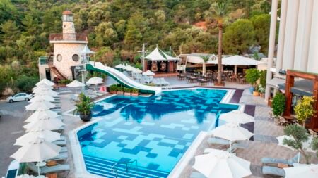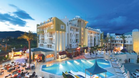 Gezinnen zijn dol op de overvloed aan faciliteiten van het Grand Cettia hotel in Marmaris. Van een levendig splash park voor de kleinste kids tot een gezellige pub in Sherlock Holmes stijl, er is voor ieder wat wils. Voor de fijnproevers onder ons is het gemak van All Inclusive beschikbaar, terwijl avonturiers gemakkelijk naar de nabijgelegen badplaats Marmaris kunnen gaan om daar het bruisende centrum te ontdekken. Een ontspannen dag op het strand doorbrengen? Ook daar ben je zó met de gratis shuttle service van het hotel. In het uitnodigende zwembad van het hotel geniet je van een verkoelende plons onder de Turkse zon. Laat jezelf ook eens in de watten leggen bij de Spa, met onder andere een sauna, bubbelbad en Turks bad. Met alles wat nodig is voor een fantastische gezinsvakantie, is het Grand Cettia Hotel de ideale keuze voor jullie volgende uitje!