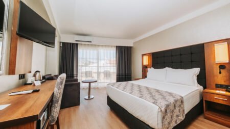 Grand Ideal Premium Hotel heet je welkom in Marmaris. Het luxe 5-sterrenhotel is van alle gemakken voorzien en je hoeft je hier geen moment te vervelen. De comfortabele kamers zijn ruim opgezet en allemaal uitgerust met airconditioning en gratis wifi. Terwijl jij geniet onder de Turkse zon bij het zwembad, vermaken de kids zich in de miniclub of het kinderzwembad. In het Spa Center begin jij je vakantie goed. Kom tot jezelf in het Turks bad en verwen jezelf met een ontspannende massage. Je verblijft in Grand Ideal Premium Hotel op basis van All Inclusive. Er zijn maar liefst 3 buffetrestaurants waar je terecht kunt voor ontbijt, lunch en diner. Het à-la-carterestaurant serveert heerlijke visgerechten voor als je een avondje bediend wil worden. Het bruisende centrum van Marmaris met tal van gezellige bars en restaurants ligt op slechts 2 km afstand. De bus stopt voor de deur van het hotel. Alle ingrediënten voor een relaxvakantie in Grand Ideal Premium Hotel.