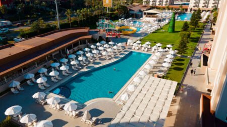 Winter Wanneer je tussen 01-11-2025 en 21-04-2026 in deze accommodatie verblijft, is onderstaande informatie van toepassing. * Ligging * Privéstrand op circa 200 meter * Zandstrand * Weg tussen het strand en de accommodatie * Ligbedden met matrasjes * Parasol * Strandhanddoekenservice * Centrum van Lara op circa 8 kilometer * Dichtstbijzijnde winkel op circa 500 meter * Dichtstbijzijnde restaurant op circa 500 meter * Shuttleservice naar het strand * Frequentie is weersafhankelijk * Bushalte op circa 500 meter * Luchthaven op circa 14 kilometer * Algemeen & faciliteiten * Kindvriendelijk complex * 8 gebouwen * Maximaal 9 verdiepingen * 896 kamers * Receptie * 24 uur per dag * Lobby * 2 liften * Lift in elk gebouw * Bagageruimte * Wifi in alle openbare ruimtes * Meerdere winkels * Minimarkt * Wasservice tegen betaling * Doktersservice tegen betaling * op aanvraag * Tuin * Privé parkeergelegenheid * Restaurants & bars * 2 buffetrestaurants * 2 à-la-carterestaurants (vooraf reserveren) * Restaurant met verschillende specialiteiten tegen bijbetaling * Visrestaurant tegen bijbetaling * Open tussen ca. april en oktober * Roomservice tegen betaling * 6 drinkgelegenheden * 2 bars * Beachbar * 2 lobbybars * Poolbar * Gesloten in het winterseizoen * Activiteiten & ontspanning * Beachvolleybal * tussen ca. april en oktober * Boogschieten * Darts * Duikcentrum tegen betaling * Open tussen ca. april en oktober * Fitness * Tafeltennis * Watersporten tegen betaling * Spa Center * Sauna * Hamam behandelingen tegen betaling * Massages tegen betaling * Schoonheidsbehandelingen tegen betaling * Bioscoop tegen betaling * Gameroom * Animatie voor volwassenen * Shows * tussen ca. april en oktober * Livemuziek * Zwembaden * 2 buitenzwembaden * Eén van deze zwembaden is gesloten in het winterseizoen * Eén van deze zwembaden is verwarmd tussen ca. zaterdag 1 november 2025 en dinsdag 31 maart 2026 * Aquapark * Gesloten in het winterseizoen tussen ca. zaterdag 1 november 2025 en dinsdag 31 maart 2026 * Miniumleeftijd van toepassing * 4 glijbanen * De glijbanen hebben verschillende openingsperiodes * Zonneterras * Ligbedden met matrasjes * Parasol * Badhanddoekenservice * Kinderfaciliteiten * Mini club (4-12 jaar) * 7 keer per week * Minidisco * Buitenspeeltuin * Babybedje als preferentie toe te voegen in het boekingsformulier * Babysitservice tegen betaling * ter plaatse op aanvraag * Verzorging * Ultra All Inclusive * Ontbijt in buffetvorm (07.00-10.00 uur) * Laat ontbijt in buffetvorm (10.00-11.00 uur) * Lunch in buffetvorm (12.30-14.00 uur) * Diner in buffetvorm (18.30-21.00 uur) * Snacks (11.00-16.00 uur) (24 uur per dag) * Koffie, thee & koekjes (11.00-17.00 uur) * IJs (14.00-16.00 uur) * Middernachtsnack (23.00-00.00 uur) * Selectie lokale (non-)alcoholische drankjes (10.00-00.00 uur) * Tegen betaling: dineren in het à-la-carterestaurant, drankjes in flessen, import drankjes, verse vruchtensappen en roomservice * Goed om te weten * Duurzaamheidslabel(s): Green Star Hotel en GSTC LabelHotelkamers * 2-persoonskamer Standaard DZ * Oppervlakte circa 22 m² * Airconditioning * Kluisje * Televisie * Telefoon tegen betaling * Eet- en drinkfaciliteiten * Koffie- en theefaciliteiten * Minibar * Dagelijks aangevuld met water * Badkamer inloopdouche, toilet en föhn * Wifi * Geen balkon of terras * Familiekamer Standaard (Type 1) FZ1 * Oppervlakte circa 36 m² * 2 slaapkamers * Airconditioning * Kluisje * Televisie * Telefoon tegen betaling * Eet- en drinkfaciliteiten * Koffie- en theefaciliteiten * Minibar * Dagelijks aangevuld met water * Badkamer inloopdouche, toilet en föhn * Wifi * Geen balkon of terras * Familiekamer Standaard (Type 2) FZ2 * Oppervlakte circa 50 m² * Woon-/slaapkamer * Slaapbank voor twee personen * 2 slaapkamers * Airconditioning * Kluisje * Televisie * Telefoon tegen betaling * Eet- en drinkfaciliteiten * Koffie- en theefaciliteiten * Minibar * Dagelijks aangevuld met water * Badkamer inloopdouche, toilet en föhn * Wifi * Geen balkon of terras * Familiekamer Standaard (Type 3) FZ3 * Oppervlakte van circa 36 m² * Woon-/slaapkamer * Slaapbank voor twee personen * Eén slaapkamer * Airconditioning * Kluisje * Televisie * Telefoon tegen betaling * Eet- en drinkfaciliteiten * Koffie- en theefaciliteiten * Minibar * Dagelijks aangevuld met water * Badkamer inloopdouche, toilet en föhn * Wifi * Balkon of terras (zitje)