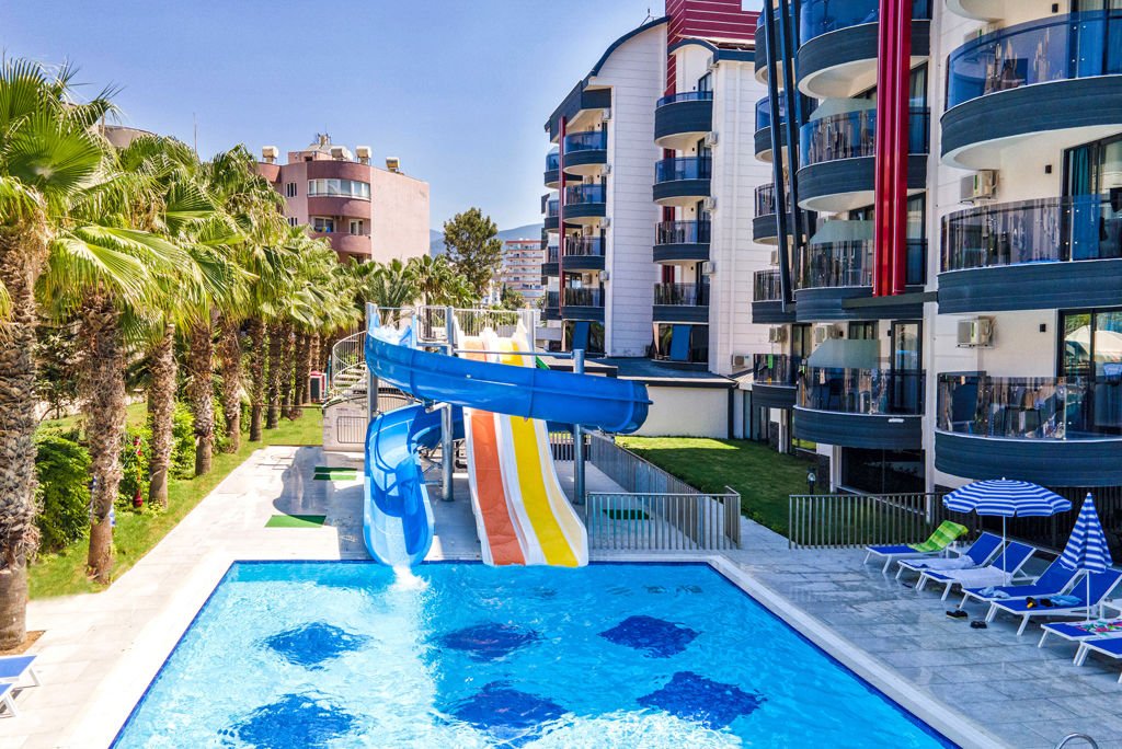 Zomer Wanneer je tussen 17-04-2025 en 15-11-2025 in deze accommodatie verblijft, is onderstaande informatie van toepassing. * Ligging * Gelegen aan het privéstrand (30 meter) * Zandstrand * Kiezelstrand * Ligbedden met matrasjes * Parasol * Centrum van Alanya op circa 4 kilometer * Dichtstbijzijnde winkel op circa 100 meter * Dichtstbijzijnde restaurant op circa 100 meter * Dichtstbijzijnde bar op circa 100 meter * Bushalte op circa 50 meter * Taxistandplaats op circa 50 meter * Algemeen & faciliteiten * Kindvriendelijk complex * 4 gebouwen * Maximaal 6 verdiepingen * 212 kamers * Receptie * 24 uur per dag * Lobby met zitgedeelte * 4 liften * Lift in elk gebouw * Bagageruimte * Wifi in één van de openbare ruimtes * Meerdere winkels * Minimarkt * Wasservice tegen betaling * Doktersservice tegen betaling * Tuin * Openbare parkeergelegenheid * Privé parkeergelegenheid * Restaurants & bars * Buffetrestaurant * 4 drinkgelegenheden * 4 bars * Beachbar * Lobbybar * Poolbar * Activiteiten & ontspanning * Aerobics * Boccia * Darts * Fitness * Tafeltennis * Watersporten tegen betaling * Spafaciliteiten * Sauna tegen betaling * Turks stoombad tegen betaling * Massages tegen betaling * Schoonheidsbehandelingen tegen betaling * Animatie voor volwassenen * 6 keer per week * Animatie voor kinderen * 6 keer per week * Shows voor volwassenen en kinderen * 3 keer per week * Zwembaden * 2 buitenzwembaden * Activiteitenbad * Zoetwater * Eén van deze zwembaden heeft 3 glijbanen * Buitenzwembad voor kinderen * Zoetwater * Zonneterras * Ligbedden met matrasjes * Parasol * Badhanddoekenservice * Kinderfaciliteiten * Mini club (4-12 jaar) * 6 keer per week * Kinderen tussen 4 en 12 jaar zijn welkom onder begeleiding van een volwassene * Minidisco * Buitenspeeltuin * Babybedje als preferentie toe te voegen in het boekingsformulier * Verzorging * All Inclusive * Ontbijt in buffetvorm (07.00-09.30 uur) * Laat ontbijt in buffetvorm (09.30-10.00 uur) * Lunch in buffetvorm (12.30-14.00 uur) * Diner in buffetvorm (19.00-21.00 uur) * Snacks (12.00-17.00 uur) * Koffie, thee & koekjes (17.00-18.00 uur) * IJs (15.00-17.00 uur) * Middernachtsnack (23.00-00.00 uur) * Selectie lokale (non-)alcoholische drankjes (10.00-00.00 uur) * Goed om te weten * Huisdieren zijn niet toegestaanHotelkamers * 2-persoonskamer Standaard Landzicht DZ * Oppervlakte circa 22 m² * Landzicht * Airconditioning * Kluisje * Satelliettelevisie * Telefoon tegen betaling * Eet- en drinkfaciliteiten * Waterkoker * Minibar * Bij aankomst gevuld met water * Badkamer met douche, toilet en föhn * Wifi tegen betaling * Balkon of terras (zitje) * 2-persoonskamer Standaard Zijzeezicht DZI * Oppervlakte van circa 22 m² * Zijzeezicht * Airconditioning * Kluisje * Satelliettelevisie * Telefoon * Eet- en drinkfaciliteiten * Waterkoker * Minibar * Bij aankomst gevuld met water * Badkamer met douche, toilet en föhn * Wifi tegen betaling * Balkon (zitje) * 2-persoonskamer Standaard Zeezicht DZM * Oppervlakte van circa 22 m² * Zeezicht * Airconditioning * Kluisje * Satelliettelevisie * Telefoon tegen betaling * Eet- en drinkfaciliteiten * Waterkoker * Minibar * Gevuld met water * Badkamer met douche, toilet en föhn * Wifi tegen betaling * Balkon (zitje) * Familiekamer Standaard FZ1 * Oppervlakte circa 37 m² * Meerdere slaapkamers * Airconditioning * Kluisje * Satelliettelevisie * Telefoon tegen betaling voor alle gasten * Eet- en drinkfaciliteiten * Waterkoker * Minibar * Bij aankomst gevuld met water * Badkamer met douche, toilet en föhn * Wifi tegen betaling * Balkon of terras (zitje)