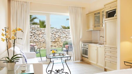 In Grecotel Marine Palace & Aquapark beleef je Kreta op zijn best tijdens een vakantie vol eindeloos plezier! Het hotel is opgebouwd als een Grieks dorp aan zee. Gigantische palmen omlijsten de verschillende zwembaden waar je geniet van de warme zonnestralen onder het genot van een verkoelend drankje, terwijl de kids genieten bij de miniclub of van oneindig spetter- en zwemplezier in het 6.000 m² grote Kingdom of Poseidon Aquapark. Gevuld met adembenemende, adrenaline pompende, recordbrekende aquatorens, attracties en glijbanen roetsj je als adrenalinejunk toch zelf ook onder luid gejuich van een duizelingwekkende waterglijbaan? Want zeg nou zelf, hier wordt toch iedereen blij van? Er is een ruime keuze aan comfortabele familiekamers, bungalows en suites met uitnodigende zomertinten en elk met een ander uniek design. Voor welk kamertype kies jij? Verblijf je in een ruime maisonnette, vlak bij het Aquapark of kies je voor een kamer met bubbelbad of geheel uitgeruste keuken? In Grecotel Marine Palace & Aquapark kan het allemaal! Ook je smaakpapillen komen hier niets tekort! Je smult onbeperkt van heerlijke maaltijden, laat je nog wat plek vrij voor het toetje? Nieuwsgierig naar een vakantie in Grecotel Marine Palace & Aquapark? Boek snel en beleef het zelf!