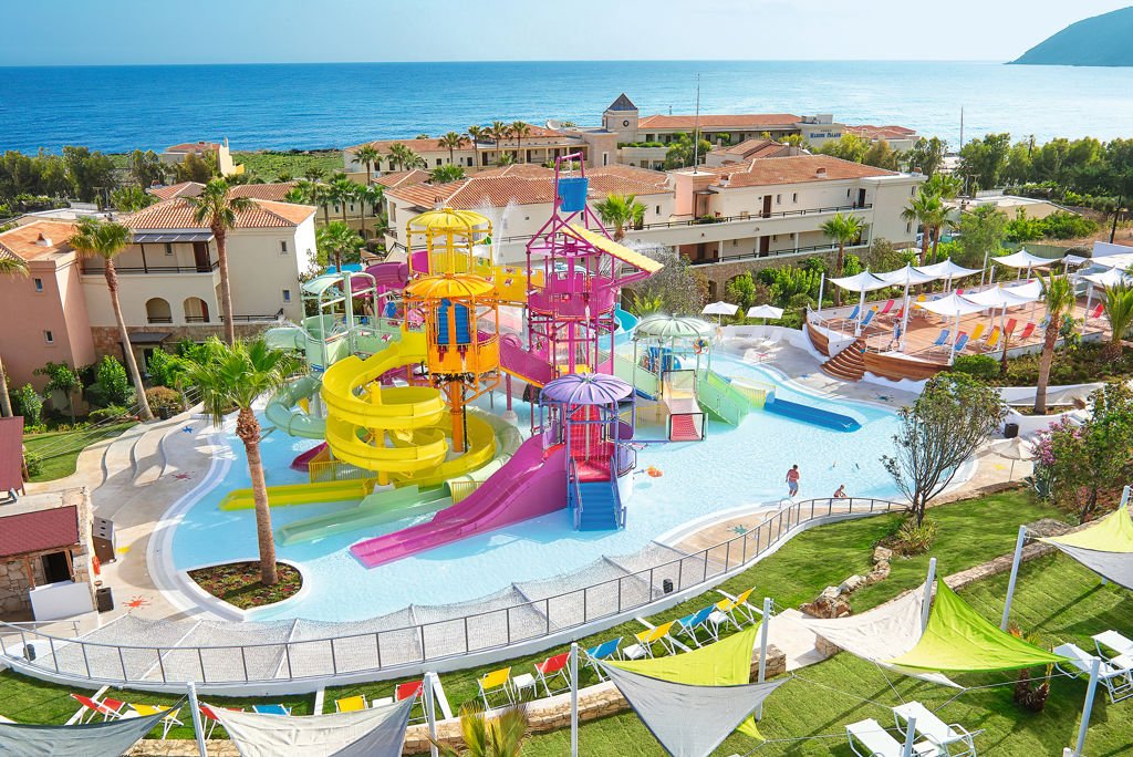 In Grecotel Marine Palace & Aquapark beleef je Kreta op zijn best tijdens een vakantie vol eindeloos plezier! Het hotel is opgebouwd als een Grieks dorp aan zee. Gigantische palmen omlijsten de verschillende zwembaden waar je geniet van de warme zonnestralen onder het genot van een verkoelend drankje, terwijl de kids genieten bij de miniclub of van oneindig spetter- en zwemplezier in het 6.000 m² grote Kingdom of Poseidon Aquapark. Gevuld met adembenemende, adrenaline pompende, recordbrekende aquatorens, attracties en glijbanen roetsj je als adrenalinejunk toch zelf ook onder luid gejuich van een duizelingwekkende waterglijbaan? Want zeg nou zelf, hier wordt toch iedereen blij van? Er is een ruime keuze aan comfortabele familiekamers, bungalows en suites met uitnodigende zomertinten en elk met een ander uniek design. Voor welk kamertype kies jij? Verblijf je in een ruime maisonnette, vlak bij het Aquapark of kies je voor een kamer met bubbelbad of geheel uitgeruste keuken? In Grecotel Marine Palace & Aquapark kan het allemaal! Ook je smaakpapillen komen hier niets tekort! Je smult onbeperkt van heerlijke maaltijden, laat je nog wat plek vrij voor het toetje? Nieuwsgierig naar een vakantie in Grecotel Marine Palace & Aquapark? Boek snel en beleef het zelf!