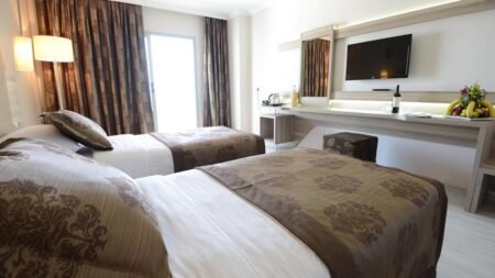 Fijn: All Inclusive, Lekker lokaal: gözleme als snack, Moderne en comfortabele kamers, Zwembad met drie glijbanen, Zo de boulevard en het strand op, Onafhankelijk duurzaamheidslabel & inclusief transfers.