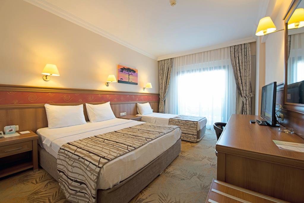 Voor de kinderen betekent een vakantie in dit hotel volop waterpret. Onbeperkt van de glijbanen af, totdat ze trek krijgen in een ijsje. Het hotel biedt een oneindige lijst met faciliteiten en vakantieplezier. Relaxen kan ook, maar het is vooral de gezelligheid die je hier brengt. En een All Inclusive tegen een scherpe prijs. De kamers van Green Nature Resort zijn zonder al te veel poespas ingericht, maar je bent toch liever de hele dag buiten in actie. Want zeg nou zelf, met die glijbanen, de Turkse zon op je bol en een verkoelend drankje van de bar heb je verder toch niets meer nodig?