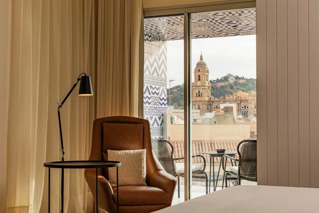 H10 Croma Málaga is een stijlvol stadshotel dat meteen indruk maakt. Zodra je binnenkomt valt de prachtige inrichting op, tot in de kleinste details uitgewerkt. Het hotel is ontworpen door de bekende architect Rafael Moneo en dat zie je terug in de strakke lijnen en moderne uitstraling. De kamers zijn comfortabel en voorzien van alles wat je nodig hebt voor een ontspannen verblijf. In het sfeervolle restaurant geniet je van heerlijke gerechten en in de bar bestel je een drankje om de dag goed af te sluiten. Op het dakterras van H10 Croma Málaga wacht je een fantastisch uitzicht over de stad. Hier vind je ook een verfrissende plungepool, perfect voor een moment van ontspanning na een dag vol ontdekkingen. Of je nu plannen maakt voor een avondwandeling door de stad of gewoon wilt genieten van de verlichte kathedraal op de achtergrond, dit hotel combineert modern comfort met een unieke sfeer in het hart van Málaga.