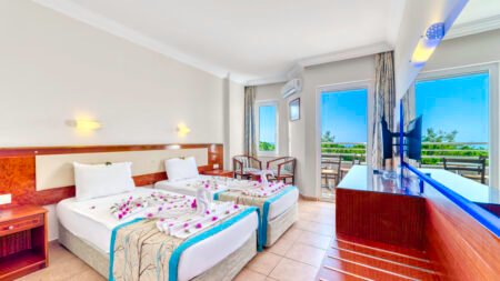 Winter Wanneer je tussen 01-11-2025 en 31-03-2026 in deze accommodatie verblijft, is onderstaande informatie van toepassing. * Ligging * Openbaar strand Kleopatra op circa 50 meter * Ligbedden tegen betaling * Parasol tegen betaling * Centrum van Alanya op circa 800 meter * Dichtstbijzijnde winkel op circa 100 meter * Dichtstbijzijnde restaurant op circa 100 meter * Dichtstbijzijnde bar op circa 100 meter * Bushalte op circa 150 meter * Taxistandplaats op circa 50 meter * Algemeen & faciliteiten * Kindvriendelijk complex * 1 gebouw * Maximaal 5 verdiepingen * 70 kamers * Receptie * 24 uur per dag * Lobby * Lift * Bagageruimte * Wifi in één van de openbare ruimtes * Doktersservice tegen betaling * Restaurants & bars * Buffetrestaurant * 2 drinkgelegenheden * Lobbybar * Poolbar * Activiteiten & ontspanning * Fitness * Spafaciliteiten * Sauna tegen betaling * Hamam * Bubbelbad binnen * Massages tegen betaling * Schoonheidsbehandelingen tegen betaling * Zwembaden * Buitenzwembad * Glijbaan * Buitenzwembad voor kinderen * Zonneterras * Ligbedden met matrasjes * Parasol * Kinderfaciliteiten * Babybedje als preferentie toe te voegen in het boekingsformulier * Verzorging * Logies & Ontbijt * Ontbijt in buffetvorm * Halfpension * Ontbijt in buffetvorm * Diner in buffetvormHotelkamers * 2-persoonskamer Standaard Landzicht DZL * Oppervlakte circa 17 m² * Landzicht * Airconditioning * Kluisje tegen betaling * Televisie * Telefoon tegen betaling * Eet- en drinkfaciliteiten * Minibar gedeeltelijk gratis * Badkamer met douche, toilet en föhn * Wifi tegen betaling * Balkon (zitje) * 2-persoonskamer Standaard Zeezicht DZM * Oppervlakte circa 17 m² * Zeezicht * Airconditioning * Kluisje tegen betaling * Televisie * Telefoon tegen betaling * Eet- en drinkfaciliteiten * Minibar gedeeltelijk gratis * Badkamer met douche, toilet en föhn * Wifi tegen betaling * Balkon (zitje)