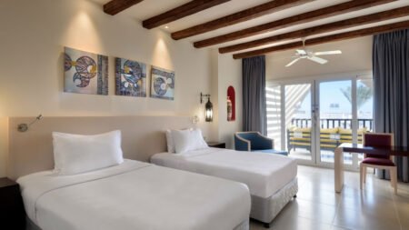 Een onvergetelijke vakantie wacht op je in het Hilton Nubian Resort. Dit prachtig gelegen hotel bevindt zich op een rustige locatie, op slechts een korte wandeling van het strand. Zwem, snorkel of duik in het kristalheldere water en ontdek het kleurrijke koraalrif met zijn adembenemende onderwaterleven. Geniet daarnaast van vier zwembaden, een modern fitnesscentrum, dagelijkse kinderactiviteiten en een breed aanbod aan bars en restaurants. De ruime kamers zijn voorzien van alle gemakken die je verblijf compleet maken. Het Hilton Nubian biedt alles voor een perfecte vakantie, waar ontspanning en avontuur samenkomen in een onvergetelijke ervaring.