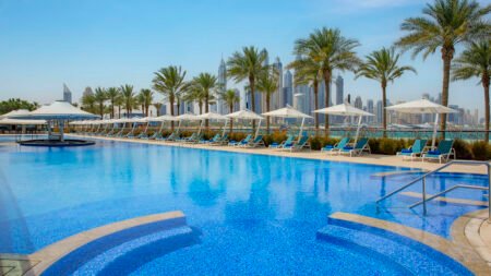 Geniet van luxe en krijg een écht vakantiegevoel in Hilton The Palm Jumeirah. Bewonder het indrukwekkende uitzicht over de turquoise Arabische Golf en de schitterende skyline van Dubai Marina vanaf het prachtige privéstrand of vanuit het comfort van jouw eigen kamer. Gelegen aan Palm West Beach op het exclusieve 'eiland' Palm Jumeirah, beschikt Hilton The Palm Jumeirah over negen eet- en drinkgelegenheden, een spa, een ruim zwembad met trendy poolbar, Kids Club en nog veel meer. Hier aanschouw je de mooiste zonsondergang van Dubai onder het genot van een zorgvuldig bereidde cocktail. Ben je klaar voor een ontspannen en onvergetelijke vakantie in Dubai waar het je aan niets mag ontbreken? Boek dan jouw 5-sterren vakantie in Hilton The Palm Jumeirah.