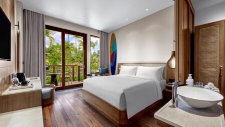 Dompel jezelf onder in het ultieme eilandleven van dit sfeervolle resort. Midden in het bruisende Canggu, tussen hippe boetieks en gezellige cafés, geniet je van een prachtig uitzicht op de oceaan. Elke stijlvol ingerichte kamer biedt datzelfde fantastische uitzicht. Zwem in het spectaculaire infinity pool op het dak en nip van een cocktail bij de Rooftop Pool Bar – dé plek om de zonsondergang te vieren. Na een dagje strand bij Batu Bolong geniet je van heerlijke gerechten in het resort. Hier beleef je het echte bohemian Canggu gevoel.