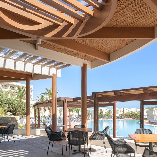Op het resort vind je drie zwembaden, een apart kinderbad en volop ruimte om te relaxen in de zon. Voor kinderen is er een Kidsclub en animatie, terwijl jij geniet van een goed boek of een verfrissend drankje aan de beachbar. Ook het eten is hier een feestje: van verse buffetten tot à-la-cartegerechten in de Griekse taverna of het Italiaanse restaurant.