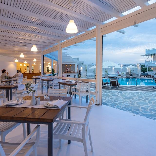 Het restaurant heeft een menukaart met typisch heerlijke Griekse gerechtjes en ook het ontbijt is een uitgebreid buffet met volop keuze. In een fijne setting kun je de dag relaxed opstarten om vervolgens de omgeving te gaan verkennen, want het is een ideale uitvalsbasis om de mooie plekjes van het eiland te gaan bezoeken.