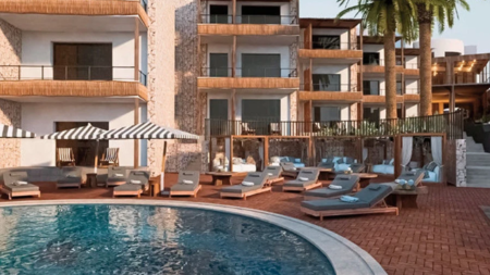 De kamers zijn stijlvol ingericht en voorzien van moderne gemakken. Sommige hebben uitzicht op zee of zelfs een jacuzzi in de kamer. Ook in de rest van het hotel zie je een mix van lichte kleuren en natuurlijke materialen, wat zorgt voor een luxe en ontspannen sfeer.