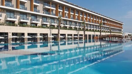 Het 5-sterrenhotel Aydinbey Queen’s Palace & Spa bevindt zich in Belek, bekend om zijn prachtige stranden, indrukwekkende natuur en diverse golfbanen.