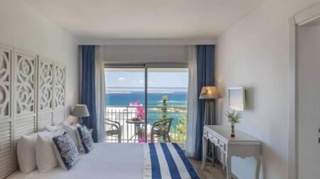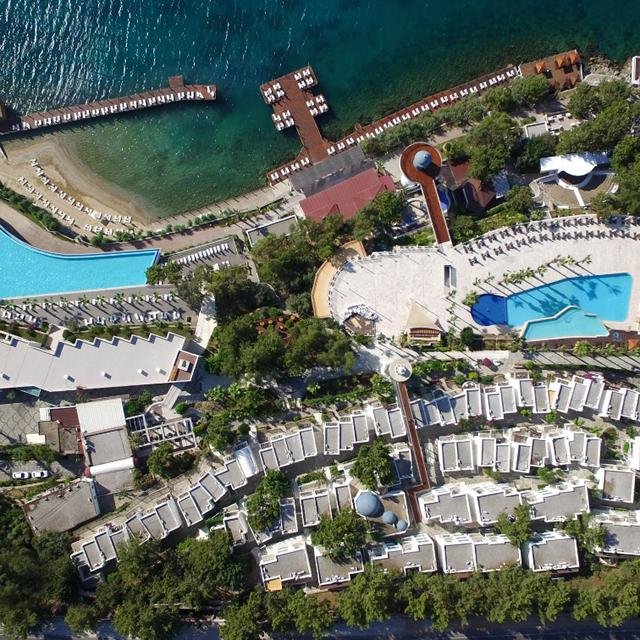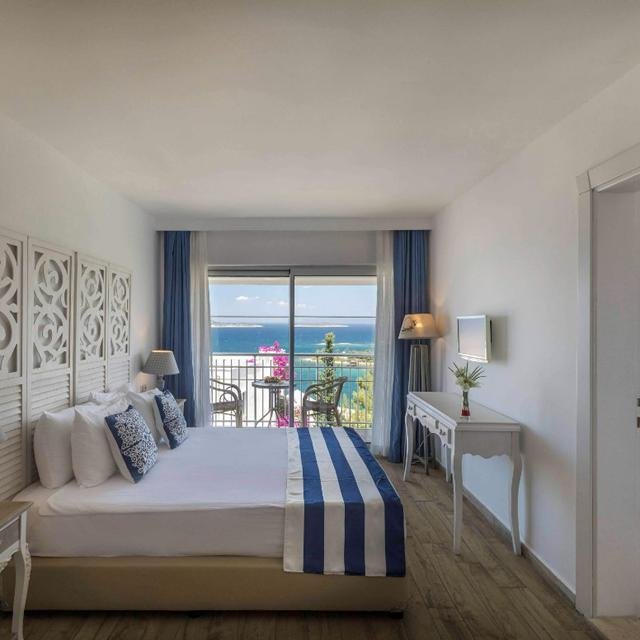 Het luxe vijfsterrenhotel Blue Dreams ligt aan een schitterende baai langs de Egeïsche kust waar je uitzicht hebt over de diepblauwe zee. Aan het strand en op de pier kun je op comfortabele ligbedjes genieten van de Turkse zon.