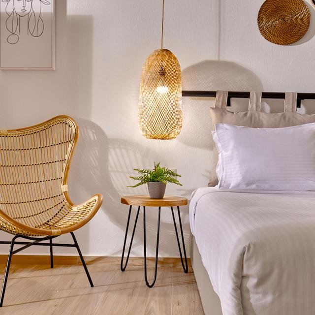 Vanaf je ligbed kijk je uit over de baai van Mirabello, omringd door indrukwekkende rotspartijen en een weids uitzicht op zee. Of je nu een dag doorbrengt aan het zwembad of liever ontspant op het strand, overal hangt een ontspannen sfeer. En die rust zet zich moeiteloos voort zodra je je kamer binnenstapt: comfortabel ingericht, met zachte kleuren, fijne bedden en een balkon of terras om nog even na te genieten van de dag.