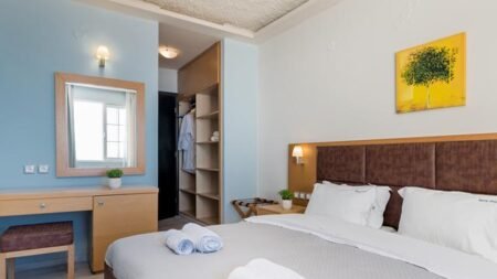 Terwijl je aan de ontbijttafel zit is de kans heel reëel dat je je ogen niet kunt afhouden van de zee, zeker niet met al die zonnige glinsteringen in het water. Hotel Crystal Beach heeft dan ook een perfecte ligging, want het ligt namelijk direct aan het strand! Binnen enkele stappen sta je al heerlijk met je blote voeten in het warme zand. Je moet wel goed kijken waar je je handdoek neerlegt, want er is een kans dat je kleine schildpadjes ziet. Na een paar uurtjes op het strand is het heerlijk om nog even een frisse duik in het zwembad te nemen. Weer helemaal fris kun je erna ook eenvoudig richting het centrum. Kalamaki is een klein dorpje met genoeg restaurantjes en winkeltjes en zelfs een supermarkt. De bus stopt trouwens bijna voor de deur, een goede gelegenheid om eens naar Laganas of Zakynthos-Stad te gaan.