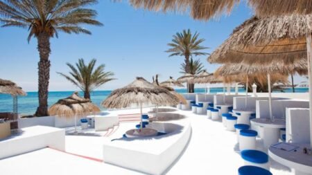 Hotel El Mouradi Djerba Menzel heeft drie heerlijke zwembaden en waterglijbanen voor de kinderen. Het hotel is omgeven door palmbomen die een tropische sfeer geven. Het hotel ligt direct aan het zandstrand waar je kunt genieten van de zon en een drankje op een comfortabel ligbedje.