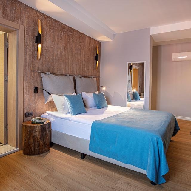 De kamers van het hotel zijn ruim, modern en netjes ingericht. De bruine accenten geven de kamer een warme en uitnodigende uitstraling. De kamer beschikt over alle nodige faciliteiten om het verblijf zo aangenaam mogelijk te namen. Denk hierbij aan koffie- en theefaciliteiten, flatscreen TV, een eigen badkamer en airconditioning. Boutique Hotel Eliada is de perfecte uitvalbasis voor je vakantie in Kusadasi!