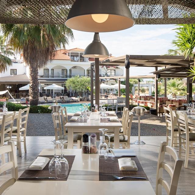 Vanaf het luxe Hotel Flegra Palace sta je na een korte wandeling al op een prachtig zandstrand of in het knusse, authentieke centrum van Pefkohori. Dit levendige plaatsje zit vol met gezellige Griekse tavernes waar je kunt genieten van échte lokale gerechten. Ook kun je heerlijk flaneren over de boulevard langs het strand. Het hotel zelf is onlangs vernieuwd met onder andere een nieuwe entree, receptie, een stijlvol restaurant en gerenoveerde kamers – perfect voor een nog comfortabeler verblijf. Ook is er een leuke strandbar, Mare Nostra, waar je overdag iets lekkers te eten en drinken kunt bestellen.