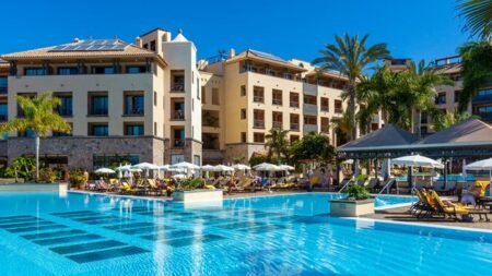 Hotel GF Gran Costa Adeje is een heel fijn vakantieadres op Tenerife. Wat dacht je van prachtige zwembaden in een mooie, fleurige tuin? Zie je jezelf al zitten met een koel drankje van de bar? En dan zijn er nog die perfecte kamers om heerlijk in uit te rusten… Alle kamers zijn voorzien van de optimale comfort. Vanaf het balkon geniet je van een mooi uitzicht en dat heerlijk onder de Spaanse zon.