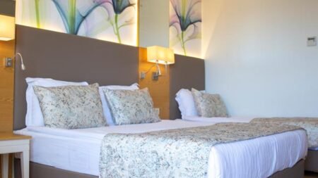 Ook bij het hotel zelf is het prima vertoeven; er is een buitenzwembad, glijbanen en een binnenzwembad. Voor de kleintjes is er zelfs een apart kinderbadje. Wil je je even terugtrekken, dan kun je dat in je fijne hotelkamer. Echt helemaal tot rust komen? Breng dan een bezoek aan de spa, waar je geniet van de sauna, stoomcabine en een Turks stoombad.