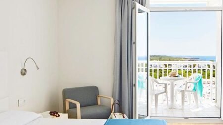 Hotel Globales Cala ’n Bosch ligt direct aan het prachtige strand. Na een paar passen kun je je handdoek al uitrollen en genieten van zon en zee.