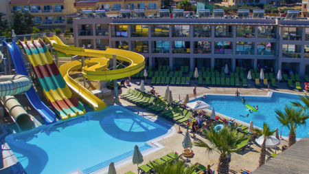 Overdag is er van alles te doen: roetsj van de glijbanen in het waterpark, speel een potje tennis of doe mee aan beachvolleybal. Voor de kleintjes is er een miniclub en een mini-disco in de avond. In de restaurants smul je van zowel Griekse specialiteiten als internationale favorieten. Of haal een verse Douwe Egberts-koffie of ijsje bij de gezellige Espresso Bar.
