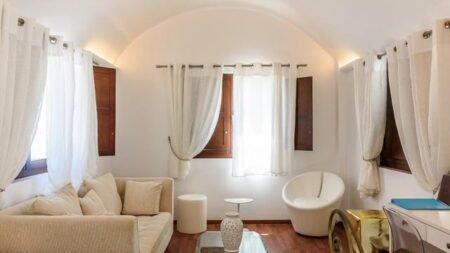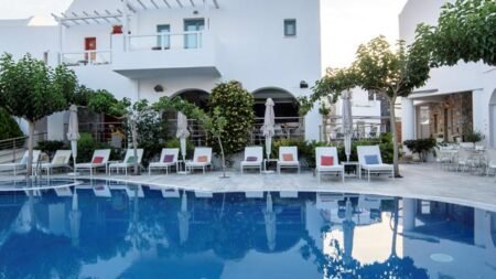 De chique architectuur is werkelijk prachtig. De witte buitenkant steekt nog witter af bij het helderblauwe zwembadwater, het groen van de tuin en de grijze natuurstenen. De kamers voelen aan als een oase van rust. Door het gebruik van veelal lichte kleuren en door de toevoeging van traditionele Cycladische elementen, oogt het interieur sereen en sfeervol.