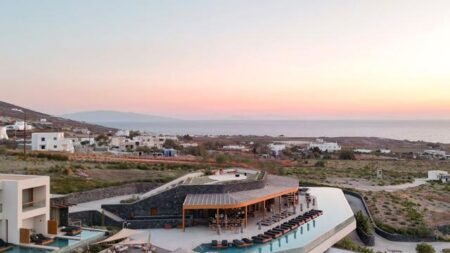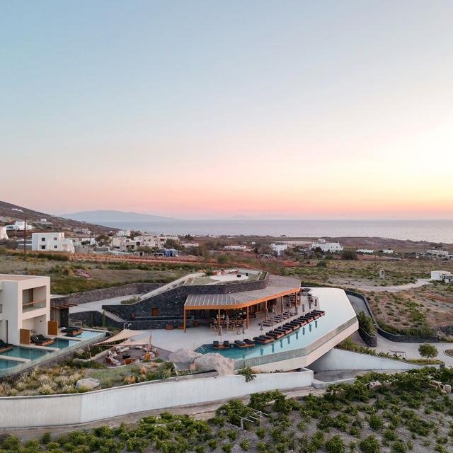 Hotel Magma Resort Santorini ligt aan de noordoostkust van het eiland, omringd door groene wijngaarden en met uitzicht op de Egeïsche Zee. Dit luxe vijfsterrenresort is onderdeel van The Unbound Collection by Hyatt en vormt een rustige uitvalsbasis in het dorp Vourvoulos. Je verblijft hier op een fijne plek, op korte afstand van de hoogtepunten van Santorini.