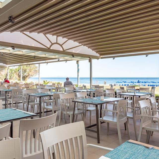 Het hotel heeft een modern en fris interieur, met kamers die een balkon of terras bieden en uitzicht hebben op de zee, het zwembad of de groene tuin. Wil je net meer iets meer luxe? Er zijn ook kamers met een swim-up gedeelte of met een jacuzzi. Voor de warme dagen is er een heerlijk zwembad met een apart kinderbad en comfortabele ligstoelen. Een verfrissend drankje heb je zo besteld bij de gezellige poolbar. Het hoogtepunt van de dag is het heerlijke ontbijt dat wordt geserveerd in Manoli’s Sunrise Restaurant. Hier kun je de dag in alle rust beginnen met een prachtig uitzicht op zee. Maar ook ’s avonds geniet je hier van een heerlijk diner.