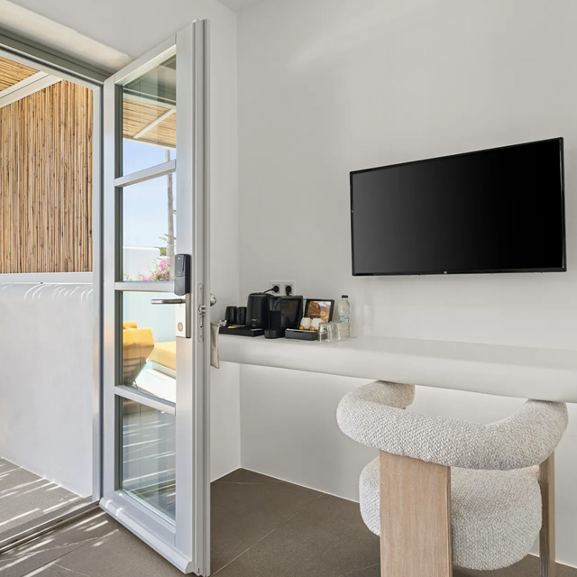 Bij Mr & Mrs White Paros Suites & More wacht een ontspannen vakantie vol comfort en moderne charme. De ruime, eigentijds ingerichte kamers nodigen uit om helemaal tot rust te komen, terwijl je in de gezellige ontbijtruimte de dag goed begint met lokale lekkernijen. Dankzij de ligging vlak bij het pittoreske Naoussa, met zijn sfeervolle straatjes, gezellige terrasjes en traditionele tavernes, combineer je hier moeiteloos rust met de levendigheid van het eiland.