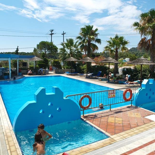Dichtbij het strand en in een rustige omgeving ligt Hotel Muses. De traditionele kamers zijn verspreid over witte, sfeervolle gebouwtjes die omringd worden door een groene tuin, waardoor het bijna een Grieks dorpje lijkt. Aan het zwembad van dit hotel kun je lekker gaan liggen onder een rieten parasolletje met een goed boek uit de bibliotheek van het hotel. Het wonderschone strand ligt op een paar minuten lopen en voor de kleine gasten is er een speeltuin. In de buurt van het hotel zijn een supermarktje, wat winkeltjes en knusse restaurantjes. In het hotel zelf serveren ze de alom bekende Griekse gyros en de lekkerste verse visjes van de gril.