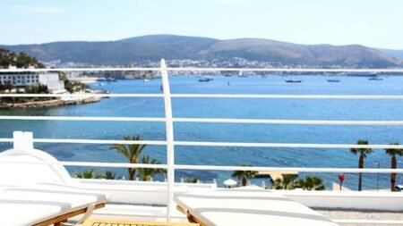 Hotel Prive Bodrum ligt perfect: vanaf het terras bij het zwembad loop je zo het strand op. Vanaf meerdere plekken in dit prachtige hotel heb je een adembenemend uitzicht op het kasteel van Bodrum en op de bootjes die in zee dobberen.