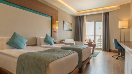 Het prachtige Hotel Ramada Resort Kusadasi & Golf ligt in de groene omgeving van Kusadasi. De luxe kamers zijn verspreid over meerdere gebouwen in het ruim opgezette resort dat wordt omgeven door pijnbomen. Het strand kun je bereiken met de gratis shuttlebus.