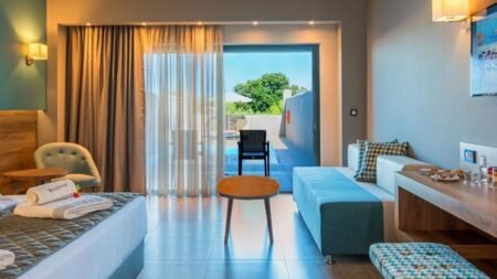 Er is veel aandacht besteed aan de indeling van het hotel. Alles ligt in een mooie en goed onderhouden tuin. Ook het heerlijke zwembad ligt er uitnodigend bij compleet met bedjes en parasols. De kinderen vermaken zich prinsheerlijk bij het aparte kinderbadje, waar een leuk speeltoestel in het water staat. Wil je er een keertje op uit? De bus stopt voor de deur die je bijvoorbeeld naar het centrum van Chania brengt.